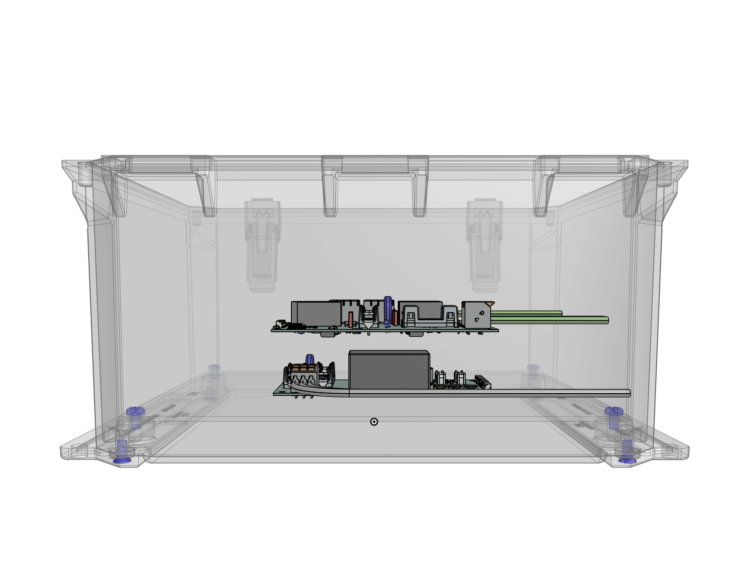 Clean internal layout with real working room. Proper spacing, labeled terminals, and space to route conductors without fighting the wires.